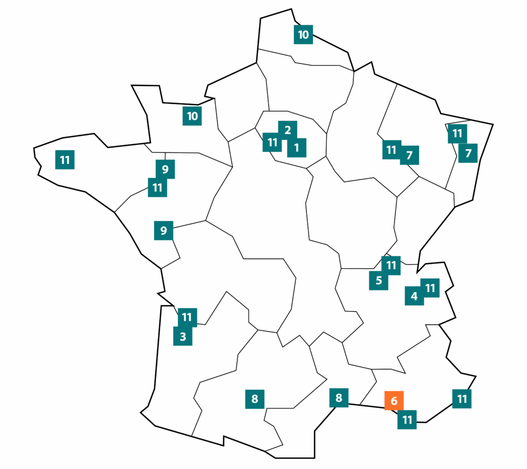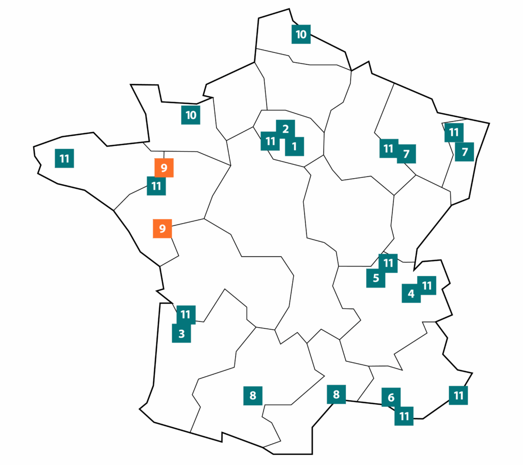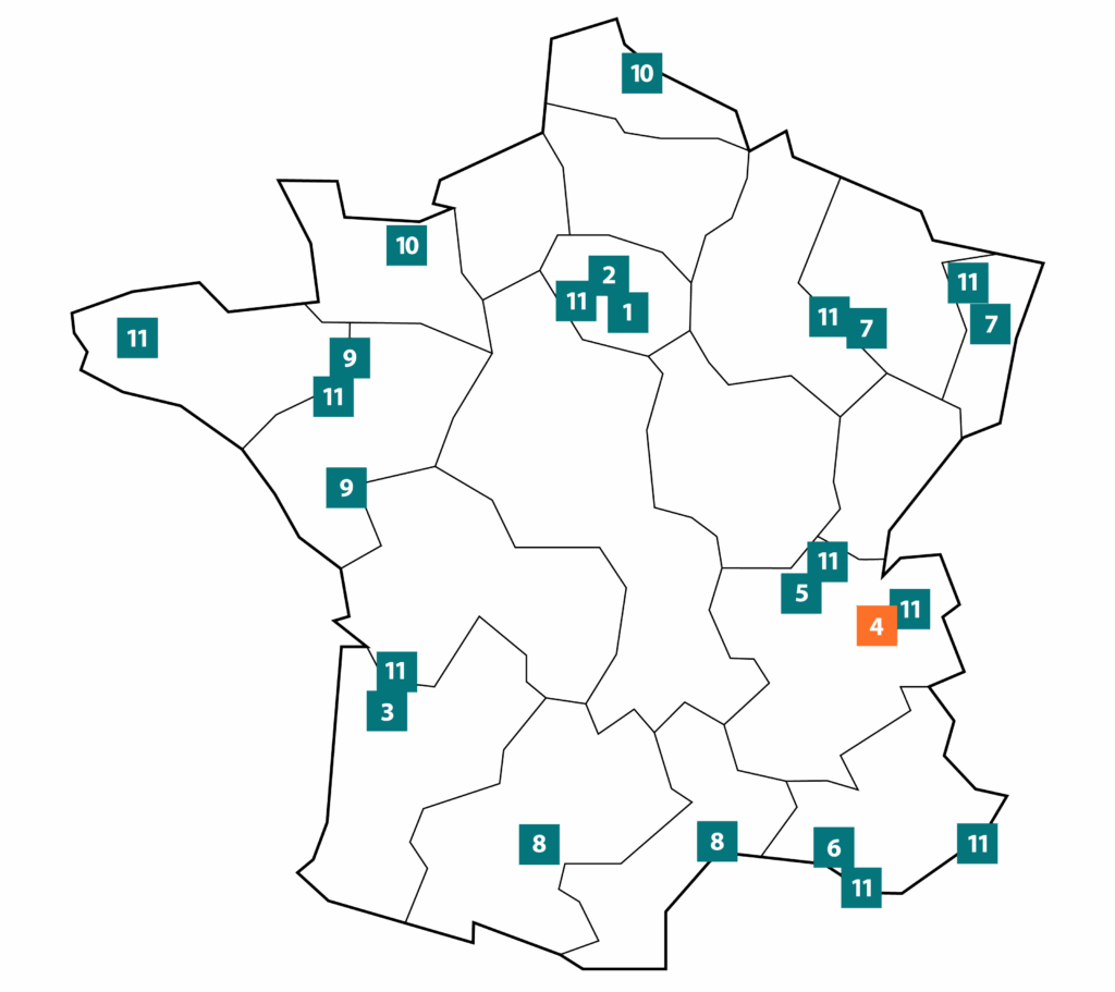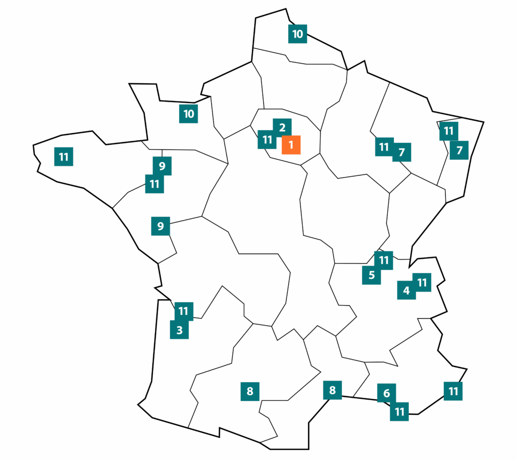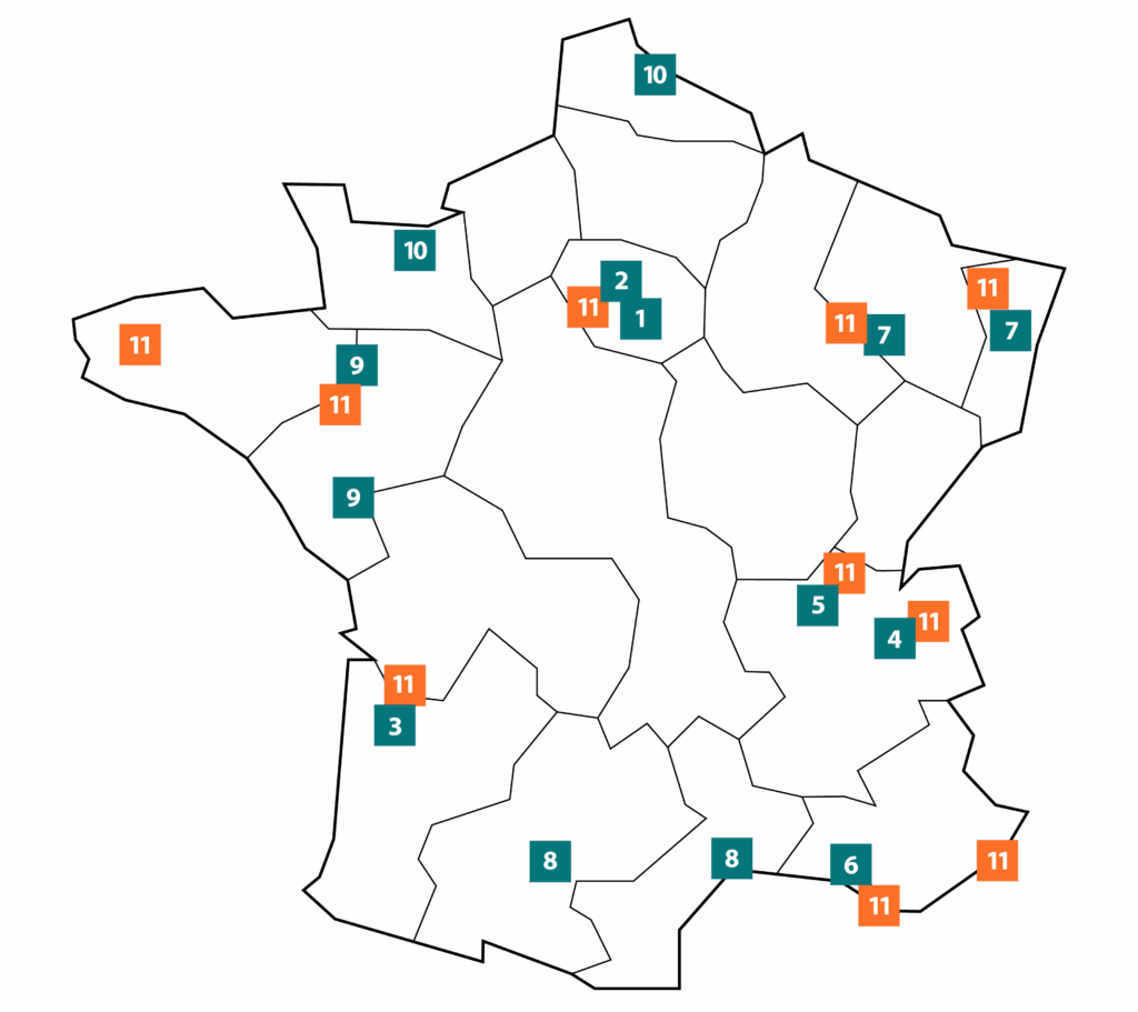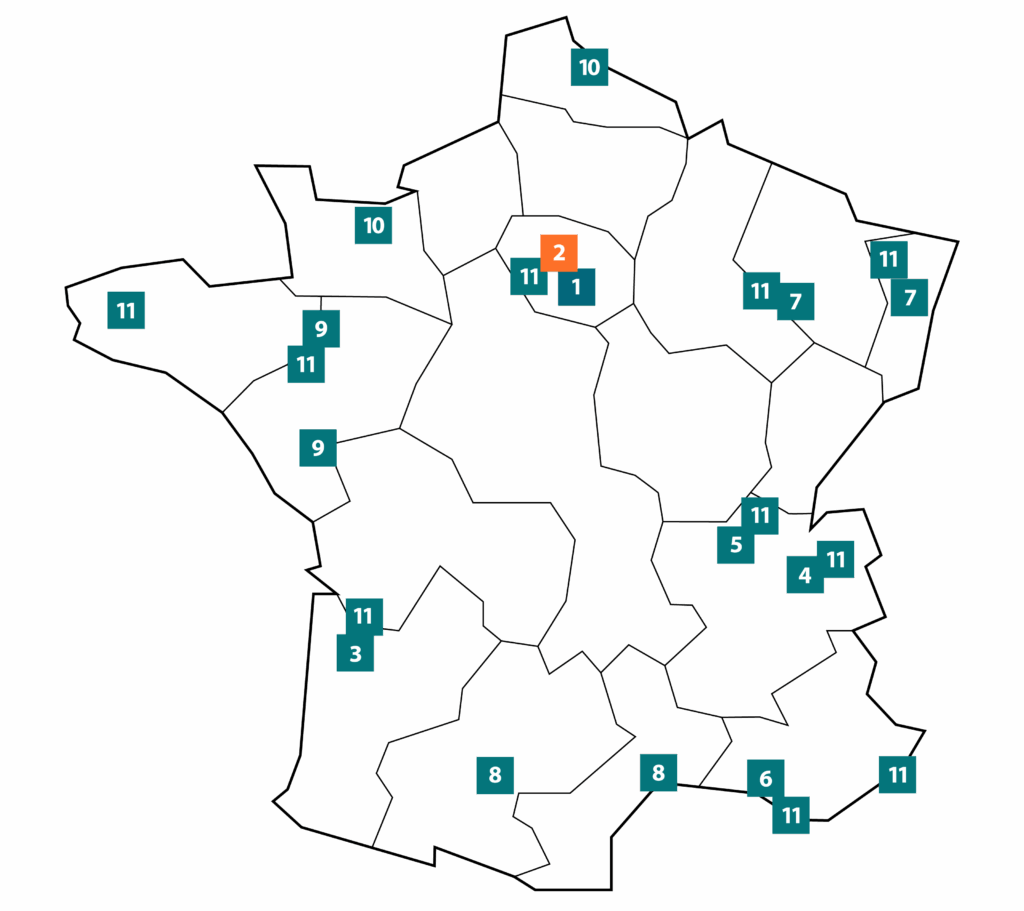 The France Life Imaging infrastructure comprises 10 regional hubs and one transverse hub, all of recognized scientific and technological quality and committed to a partnership approach.